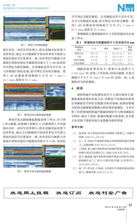 该异常处, 通过 B 扫描视图可知该异常信号位置与 [ 1 ] 赵东海. 风力发电技术的应用现状与展望[ J ] . 光源与