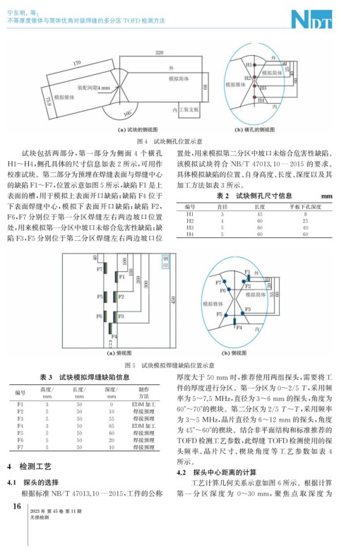不等厚度锥体与筒体优角对接焊缝的多分区 TOFD 检测方法