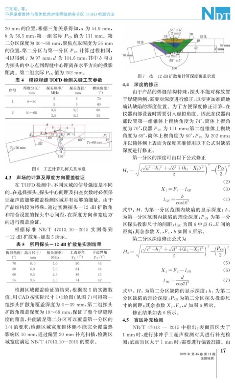 组探头扩散角覆盖深度为 0~39mm , 第二组探头 寸的间距; 其余参数 X 2 F 2 d 如图6所示。