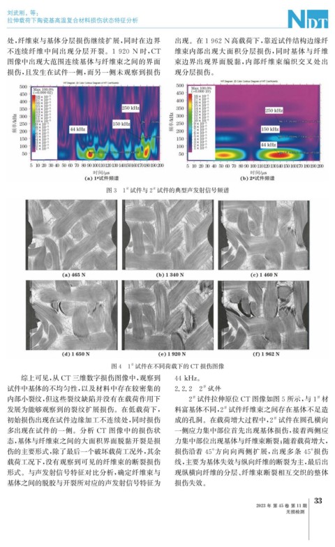 综上可见, 从 CT 三维数字损伤图像中, 观察到 44kHz 。