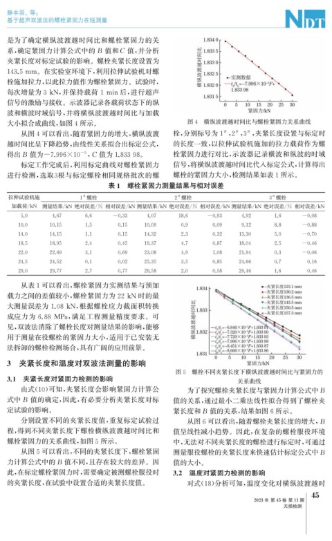 从图5可以看出, 不同的夹紧长度下, 螺栓紧固 测量服役螺栓的夹紧长度来快速估计标定公式中B