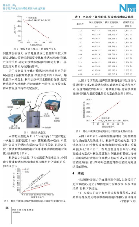建立横波和纵波渡越时间差与温度变化量的关系, 栓紧固力的计算, 即可补偿温度对螺栓紧固力测量