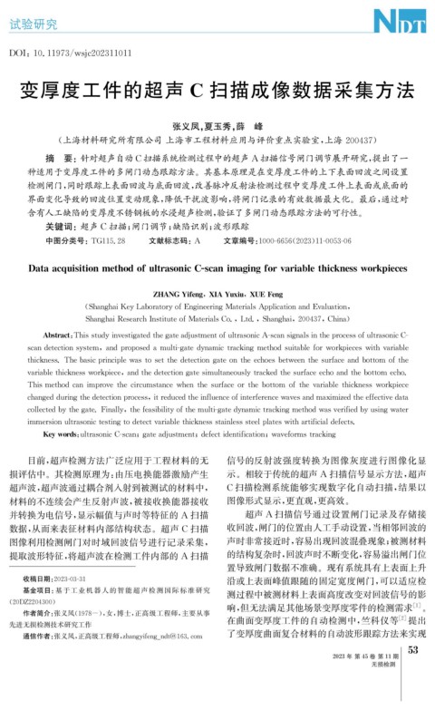 关键词: 超声 C扫描; 闸门调节; 缺陷识别; 波形跟踪