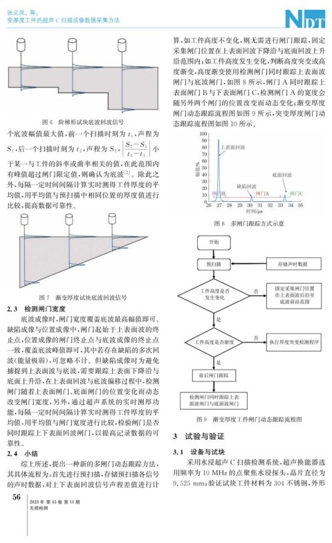 综上所述, 提出一种新的多闸门动态跟踪方法, 采用水浸超声 C 扫描检测系统, 超声换能器选
