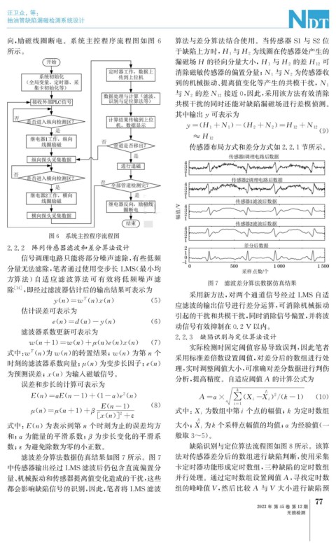 都会影响缺陷信号的识别, 因此, 笔者将 LMS滤波 组的峰峰值V , 然后比较 A 与V 大小进行缺陷预