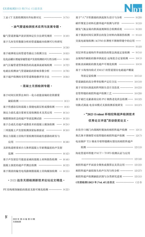 《 无损检测》 2023年( Vol.45 ) 总目次 ………………… ( 12-I )