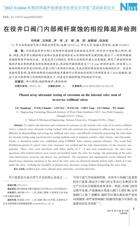 “ 2023Evident 杯相控阵超声检测技术优秀论文评选”活动获奖论文