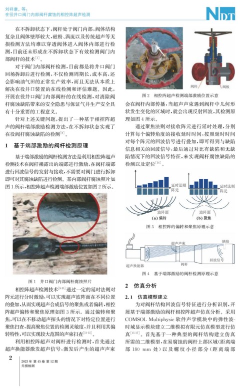 开展在役井口阀门内部阀杆的在线检测, 对消除阀 图2 相控阵超声检测端部激励位置示意