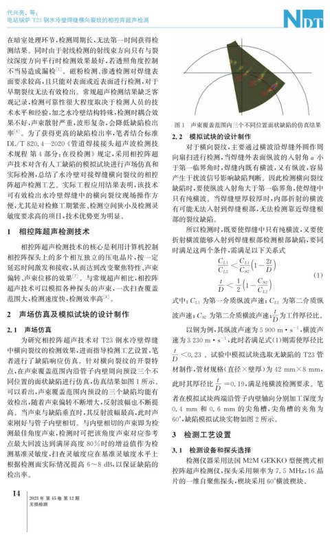 为研究相控阵超声技术对 T23 钢水冷壁焊缝 速为3230m · s , 此时若满足式( 1 ) 则需使厚径比