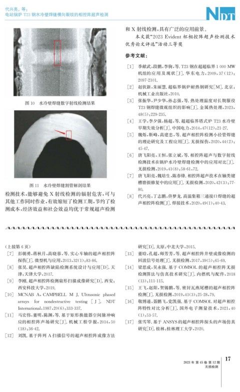 电站锅炉 T23钢水冷壁焊缝横向裂纹的相控阵超声检测