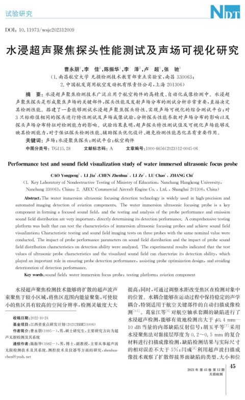 Ke ywords : soundfield ; waterimmersionfocus p robe ; testin gp latform ; aviationcom p onent