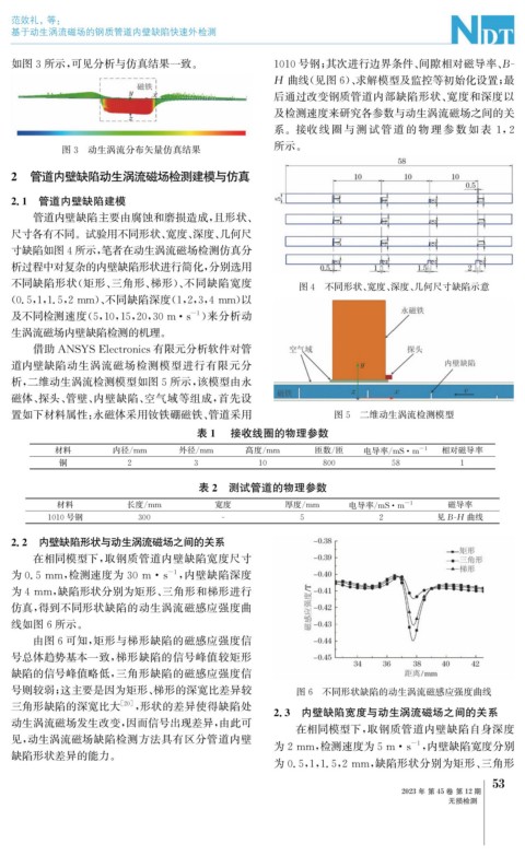 为2mm , 检测速度为5m · s , 内壁缺陷宽度分别