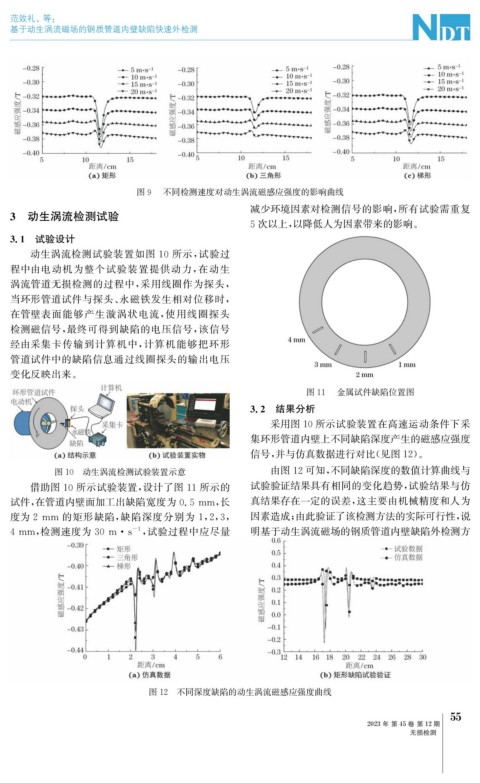 4mm , 检测速度为30m · s , 试验过程中应尽量 明基于动生涡流磁场的钢质管道内壁缺陷外检测方