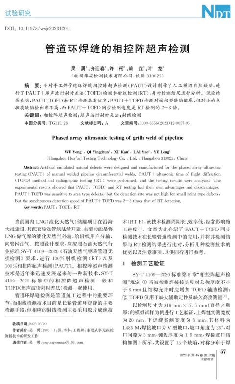 大批建设, 其配套输送管线陆续开建, 主要功能是将 工进度 [ 1 ] 。文章为此介绍了 PAUT+TOFD 同步