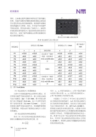 (1)检出缺陷大小准确度表征 式中: 、 分别为缺陷在 、 两个相互垂直方