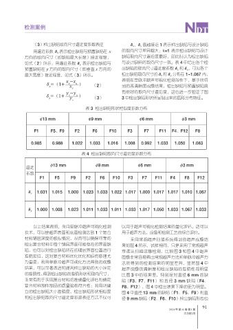 立的检出缺陷大小准确度、检出缺陷形状相似度 图 4 中直径 13 mm 的缺陷(F1、F5、F9)和直