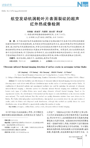 关键词: 航空发动机; 涡轮叶片; 表面裂纹; 超声红外热成像