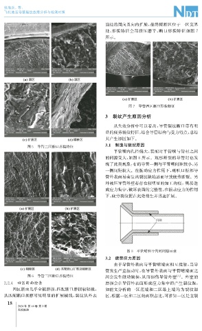 图6 导管三区断口形貌特征 间会发生微动磨损, 从而损伤导管外壁 [ 3 ] 。外壁的