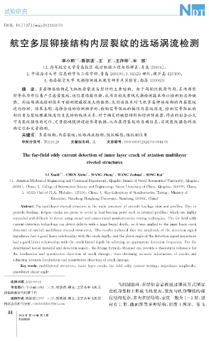 陷。而远场涡流检测技术可检测埋藏深度大的缺陷, 采用该技术对飞机多层铆接结构的内层裂纹