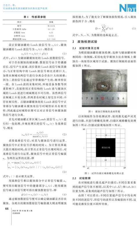 式中: d ( t ) 为储油罐腐蚀处的 Lamb波散射信号。 相同的一块钢板, 采用电化学腐蚀方法在钢板上腐