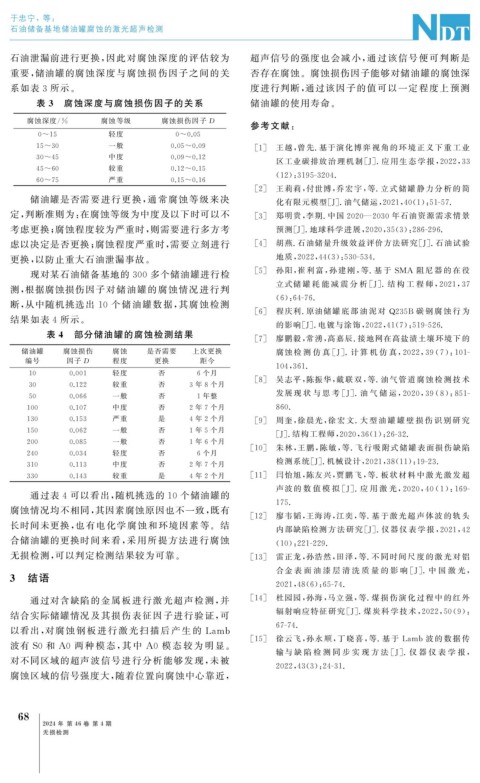 130 0.153 严重 是 4 年 2 个月 [ 9 ] 周奎, 徐晨光, 徐 宏 文 . 大 型 油 罐 罐 壁 损 伤 识 别 研 究