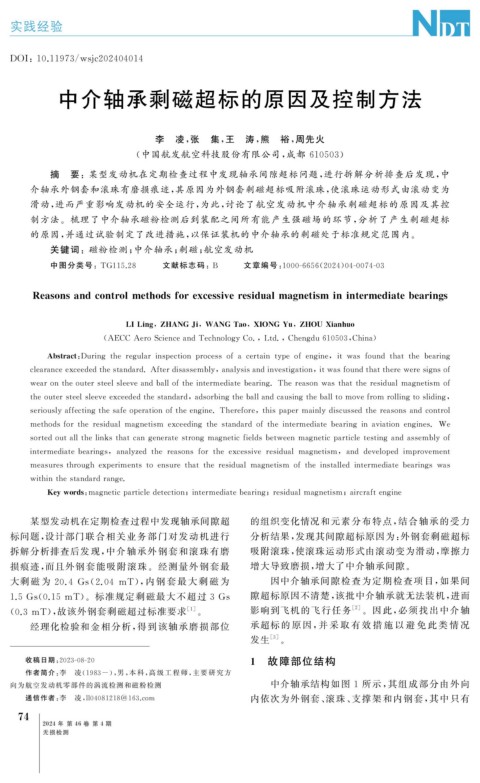 关键词:磁粉检测; 中介轴承; 剩磁; 航空发动机