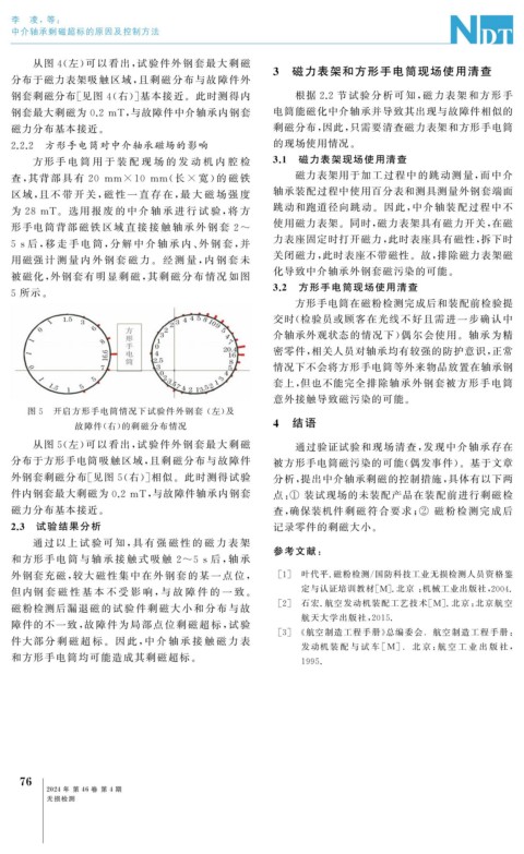 从图 5 ( 左) 可以看出, 试验件外钢套最大剩磁 通过验证试验和现场清查, 发现中介轴承存在