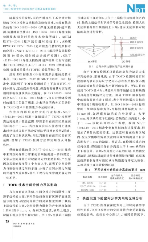 1 TOFD 技术空间分辨力及其影响 ISO15626 15~50 3 1