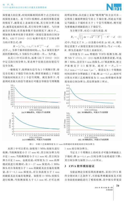 检测, 当检测深度小于 17 mm 时, 其空间分辨力均 当定义 2 个周期以上的时差才可能分辨缺陷上