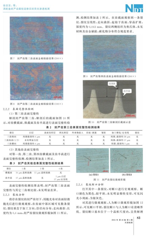 涡轮盘封严齿裂纹返修后的荧光渗透检测