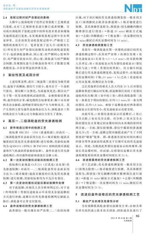 规程检查相关尺寸。笔者复查了近几月( 故障发生 4.5 荧光渗透检测复检工艺
