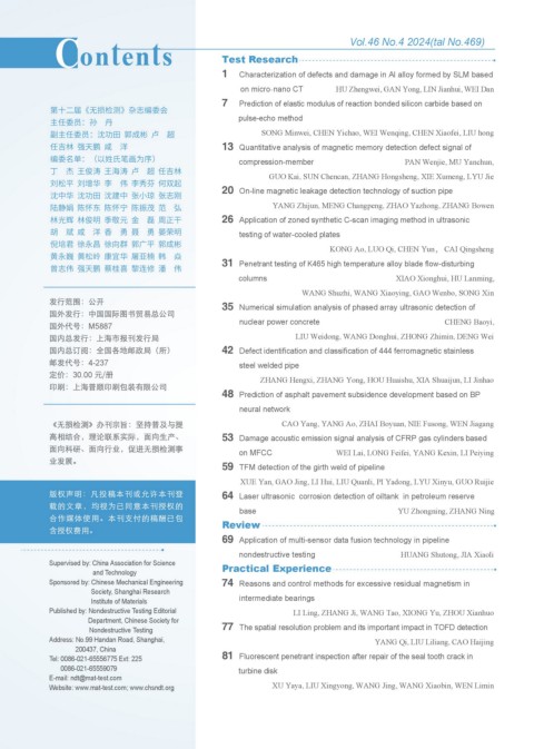 Published by: Nondestructive Testing Editorial LI Ling, ZHANG Ji, WANG Tao, XIONG Yu, ZHOU Xianhuo