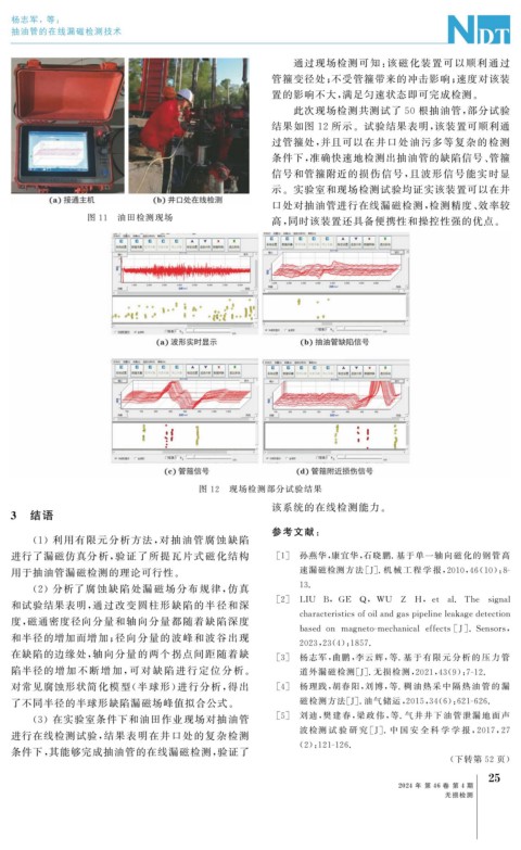 口处对抽油管进行在线漏磁检测, 检测精度、 效率较