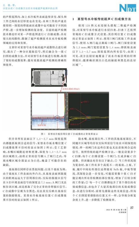 扫图的成像方法, 并对该型号水冷板进行检测, 取得 可见, 该方 法 较 好 地 覆 盖 了 该 水 冷 板 沿 周 的 钎 焊