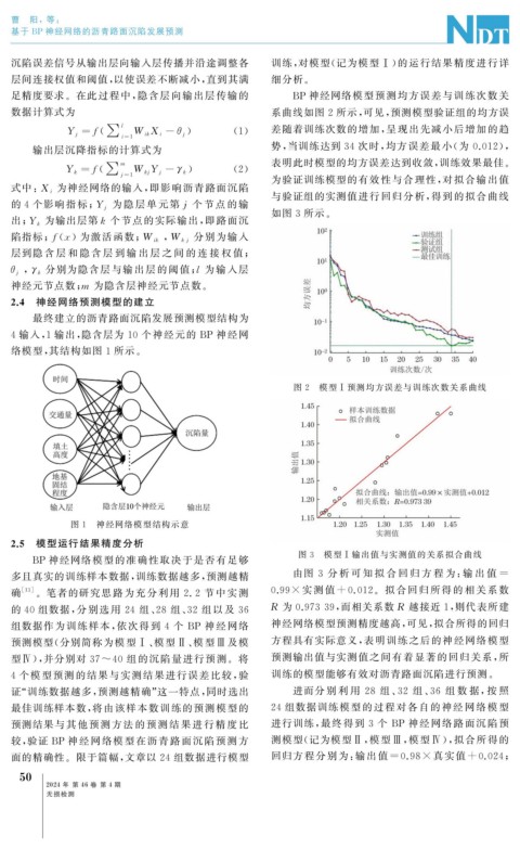 较, 验证 BP 神经网络模型在沥青路面沉陷预测方 测模型( 记为模型 Ⅱ , 模型 Ⅲ , 模型 Ⅳ ), 拟合所得的