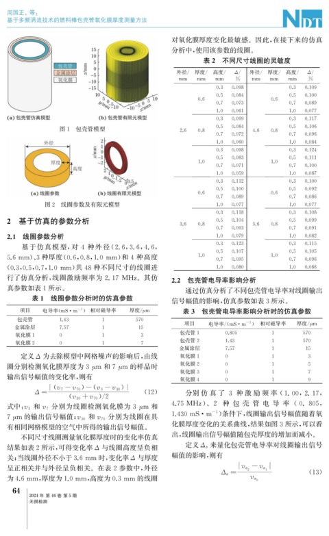 项目 电导率( mS · m -1 ) 相对磁导率 厚度 / m 表3 包壳管电导率影响分析时的仿真参数