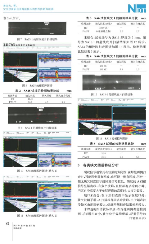 表3 , 4所示。 表3 SA6试板缺欠1的检测结果比较 mm