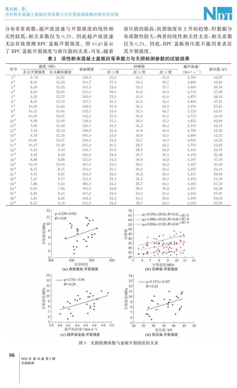 活性粉末混凝土盖板抗弯承载力与无损检测参数的相关性试验