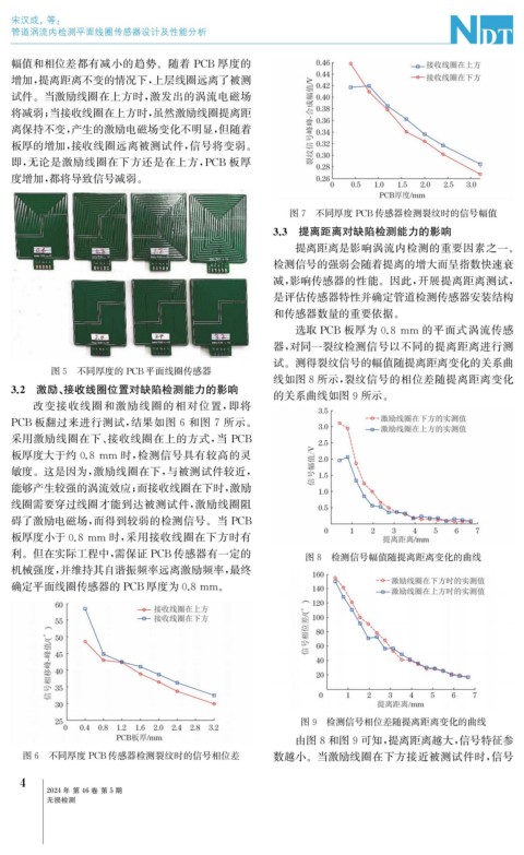 利。但在实际工程中, 需保证 PCB传感器有一定的 图8 检测信号幅值随提离距离变化的曲线