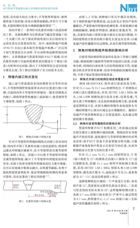 国内开展了一系列针对孔锥形内坡口改进的研 的缺陷漏检、 缺陷评判错误、 缺陷位置偏差等。因