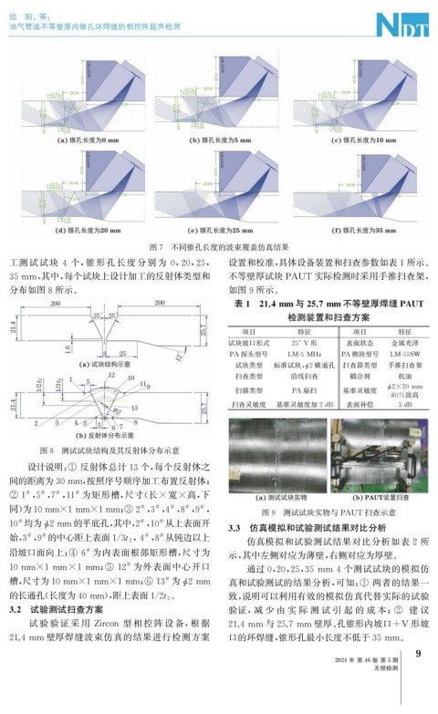 21.4mm 壁厚焊缝波束仿真的结果进行检测方案 口的环焊缝, 锥形孔最小长度不低于35mm 。