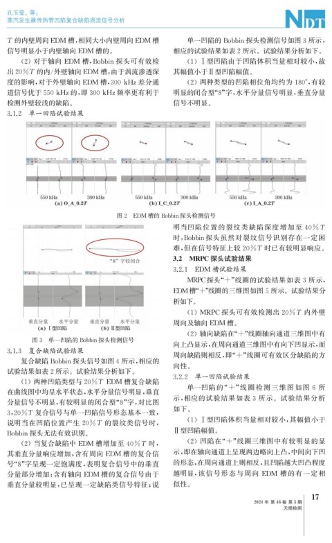 ( 2 )对于轴向 EDM 槽, Bobbin 探头可有效检 ( 1 ) Ⅰ型凹陷由于凹陷体积当量相对较小, 故