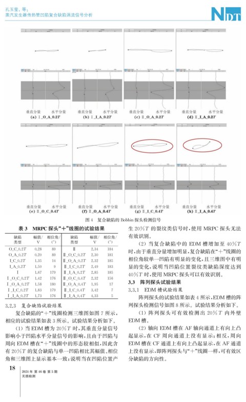 表3 MRPC探头“ + ” 线圈的试验结果 生20% T 的裂纹类信号时, 使用 MRPC 探头无法