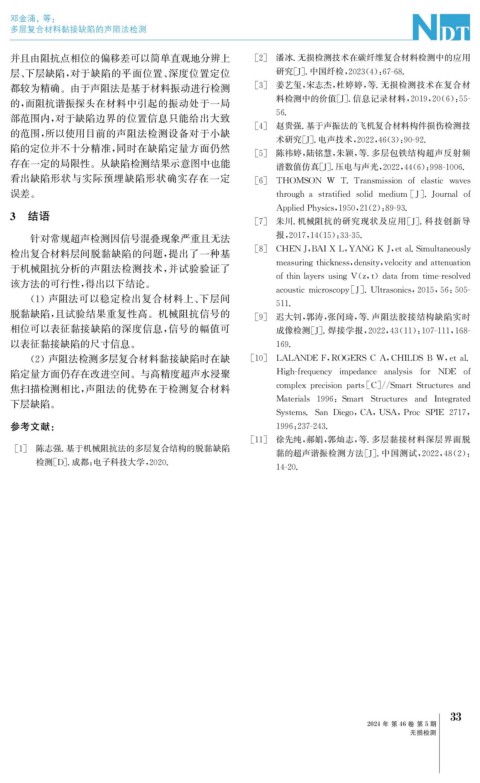 ( 2 )声阻法检测多层复合材料黏接缺陷时在缺 [ 10 ] LALANDEF , ROGERSC A , CHILDSB W , etal.