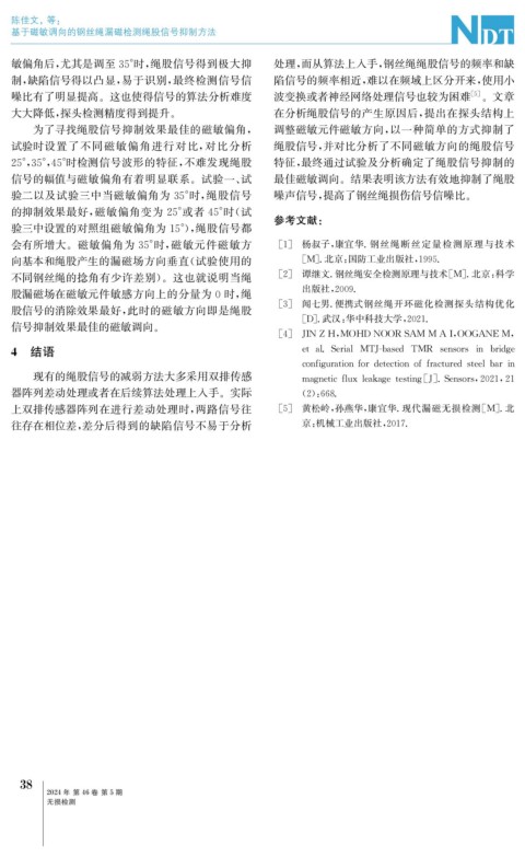 现有的绳股信号的减弱方法大多采用双排传感 ma g neticfluxleaka g etestin g [ J ] .Sensors , 2021 , 21
