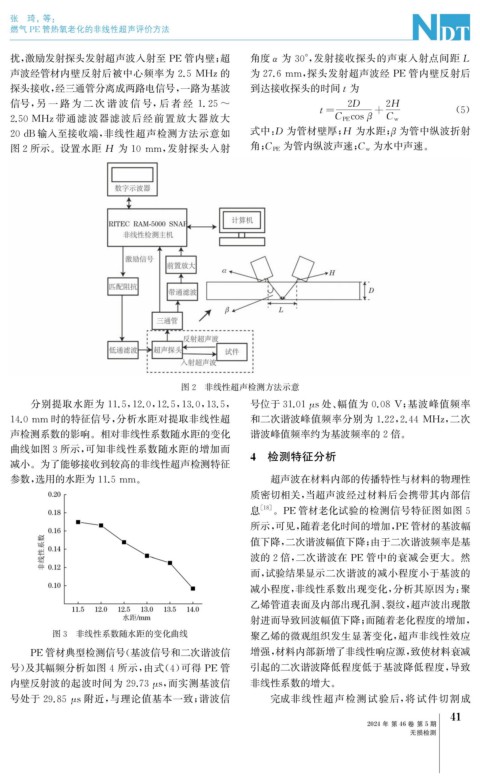 20dB输入至接收端, 非线性超声检测方法示意如 式中: D 为管材壁厚; H 为水距; 为管中纵波折射