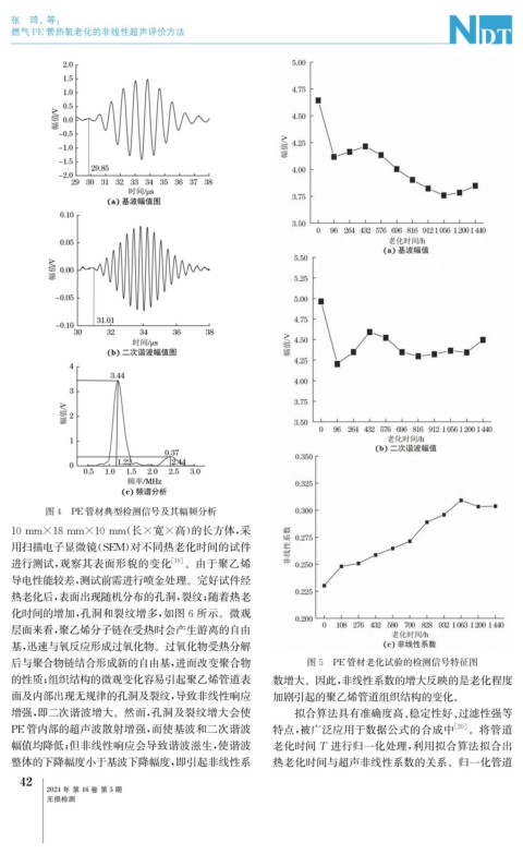 面及内部出现无规律的孔洞及裂纹, 导致非线性响应 加剧引起的聚乙烯管道组织结构的变化。