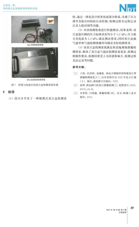 图7 传统与改进后的真空盒检测系统外观 [ 2 ] 孙明. 核电阀门的真空泄漏检测[ J ] . 化肥设计, 2022 ,