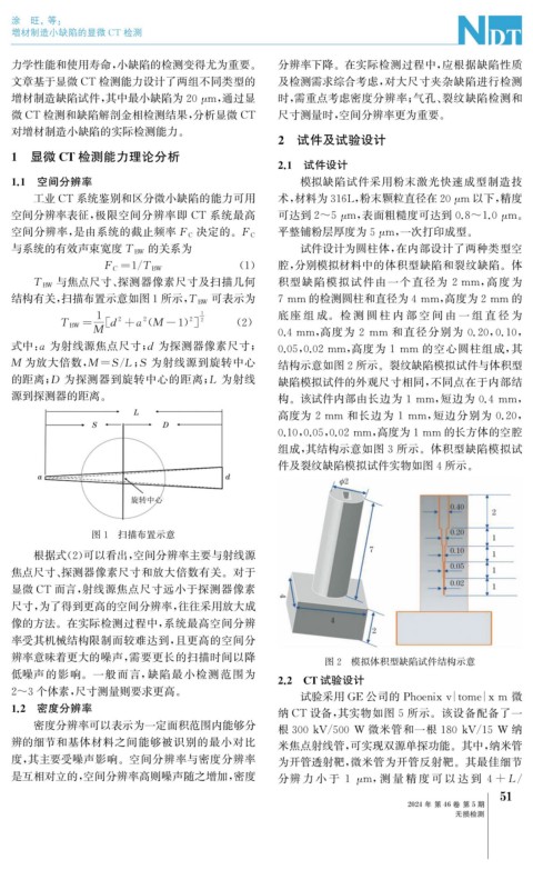 增材制造缺陷试件, 其中最小缺陷为20 μ m , 通过显 时, 需重点考虑密度分辨率; 气孔、 裂纹缺陷检测和