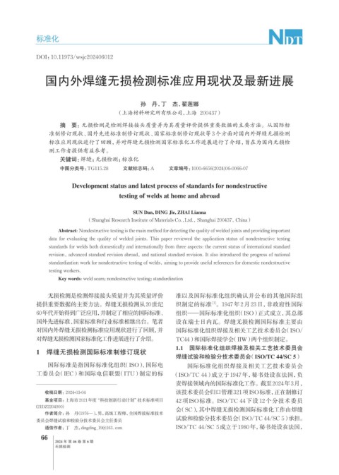 standardization work for nondestructive testing of welds, aiming to provide useful references for domestic nondestructive